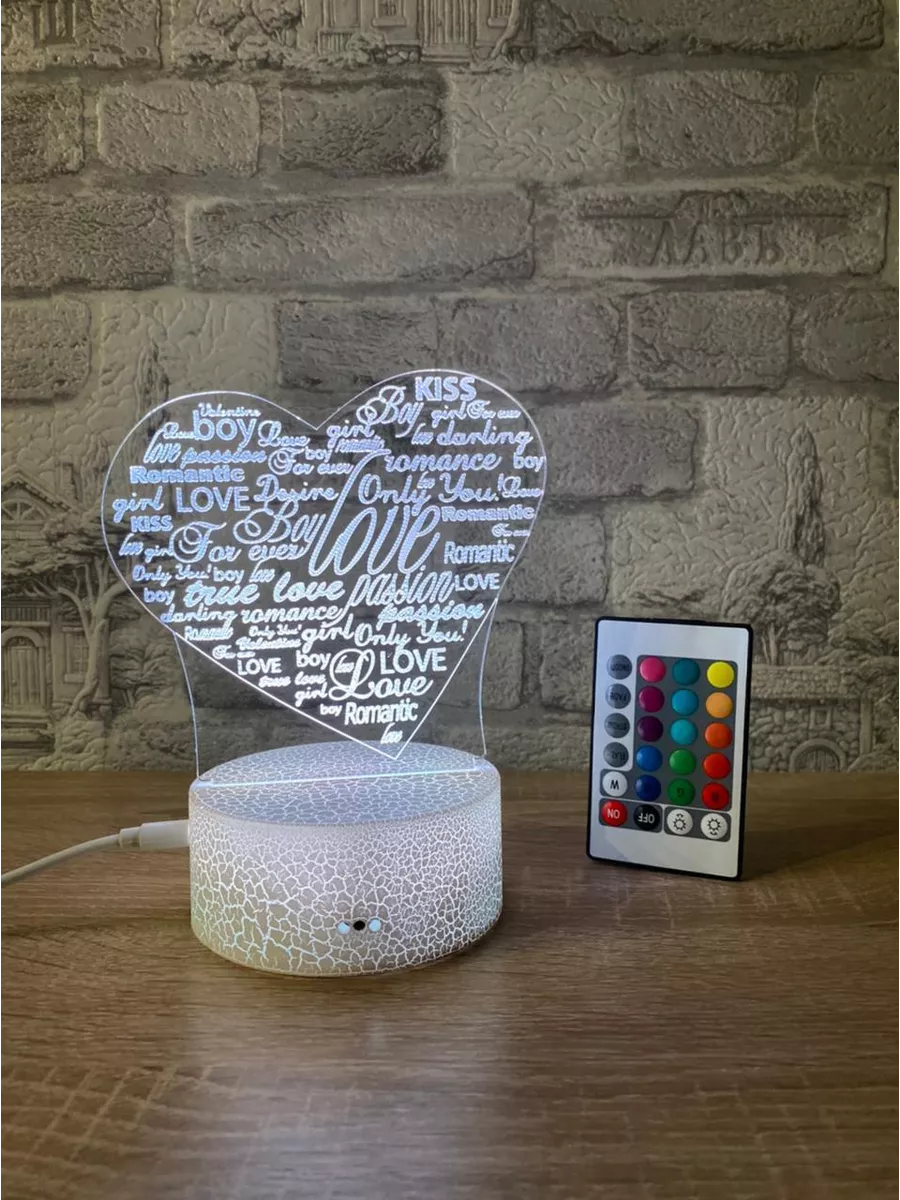 3D Светильник СЕРДЕЧКО, LOVE с пультом, 04-све209