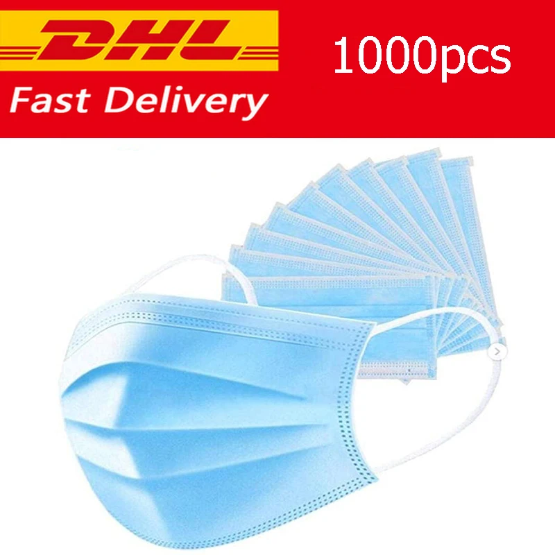 1000pcs Face Masks Disposable 3 Layers Dustproof Mask Facial Protective Cover Masks Anti-Dust Salon Earloop non N95 kf94 PM2.5