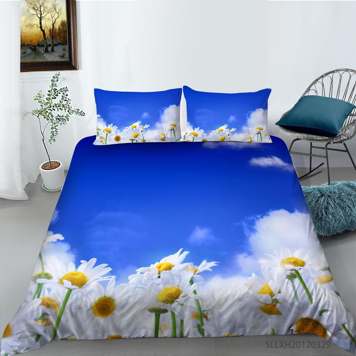 3D маленькое постельное белье с рисунком ромашки, односпальная двуспальная кровать, полноразмерная наволочка с рисунком хризантемы и пододеяльник, удобное украшение для дома AU Double 180x210cm