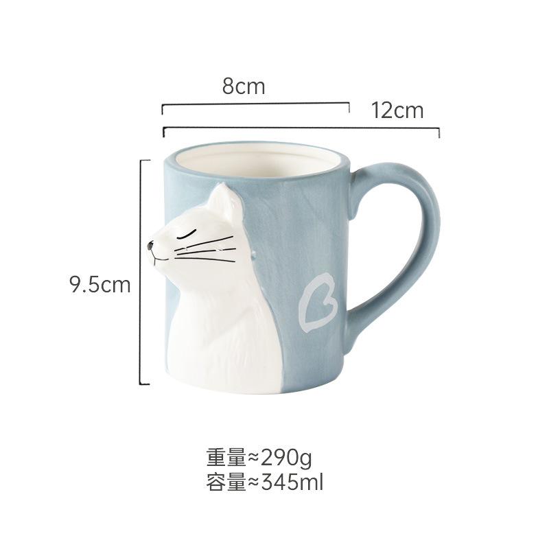 3D мультяшная чашка для воды с котом, керамическая кружка с креативной ручкой, нерегулярные кофейные чашки, кружки для завтрака, чая с молоком, офисная домашняя посуда для напитков 345ml