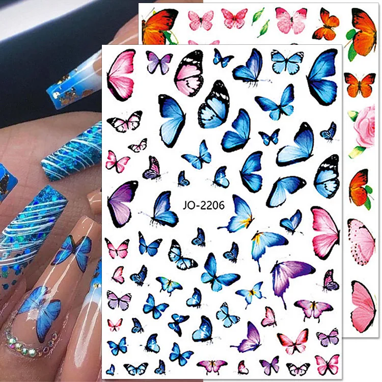 3D наклейки для ногтей с бабочками, акварельные наклейки для ногтей с бабочками, самоклеящиеся наклейки для ногтей, наклейки с бабочками для ...