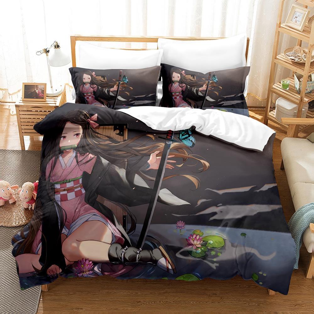 3D-печать аниме простыня Demon Slayer постельное белье комплект односпальный двуспальный двуспальный двуспальный комплект для взрослых и детей спальня пододеяльник наборы EU Twin 135x200cm