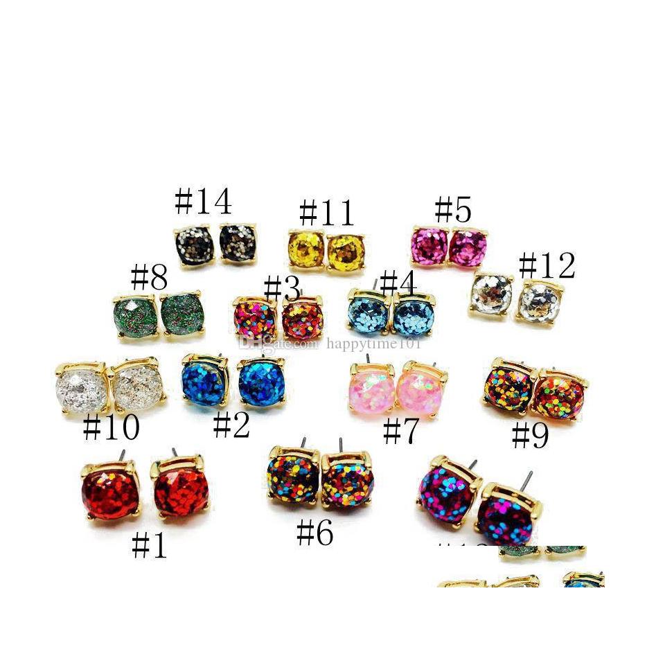 Stud Fashion Glitter Druzy Drusy Square Dot Earring 14 Color Gold Plated Cute Small Shinny Rainbow Opal Ear Stud Women Fine Jewelry Dhbij
