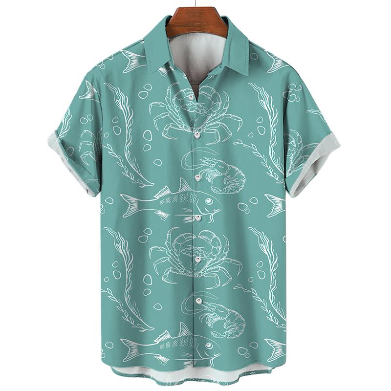 3D-принт акула медуза гавайская рубашка для мужчин повседневная морская жизнь животные узор короткий рукав блузка летние модные топы рубашки 2XL