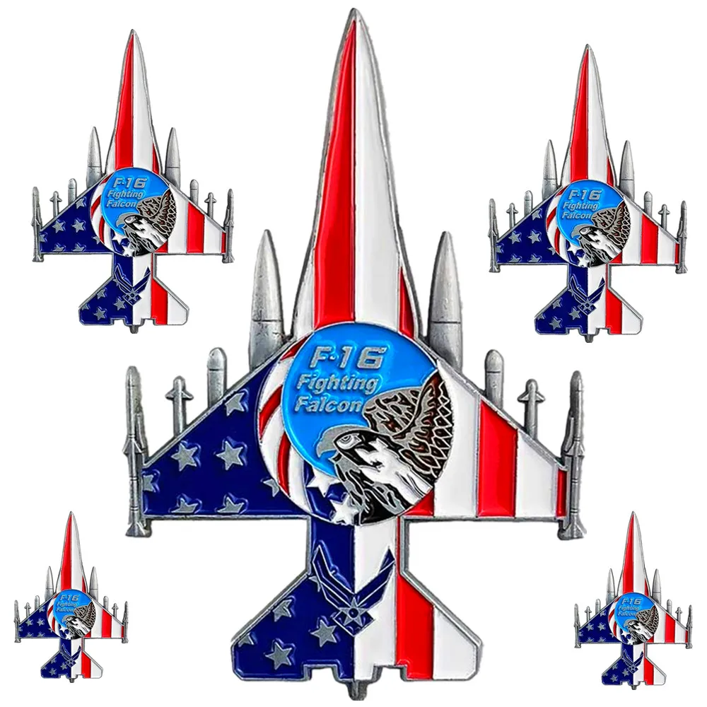 3D самолет в форме F16 файтинг Сокол США ВВС памятная монета значок коллекционер