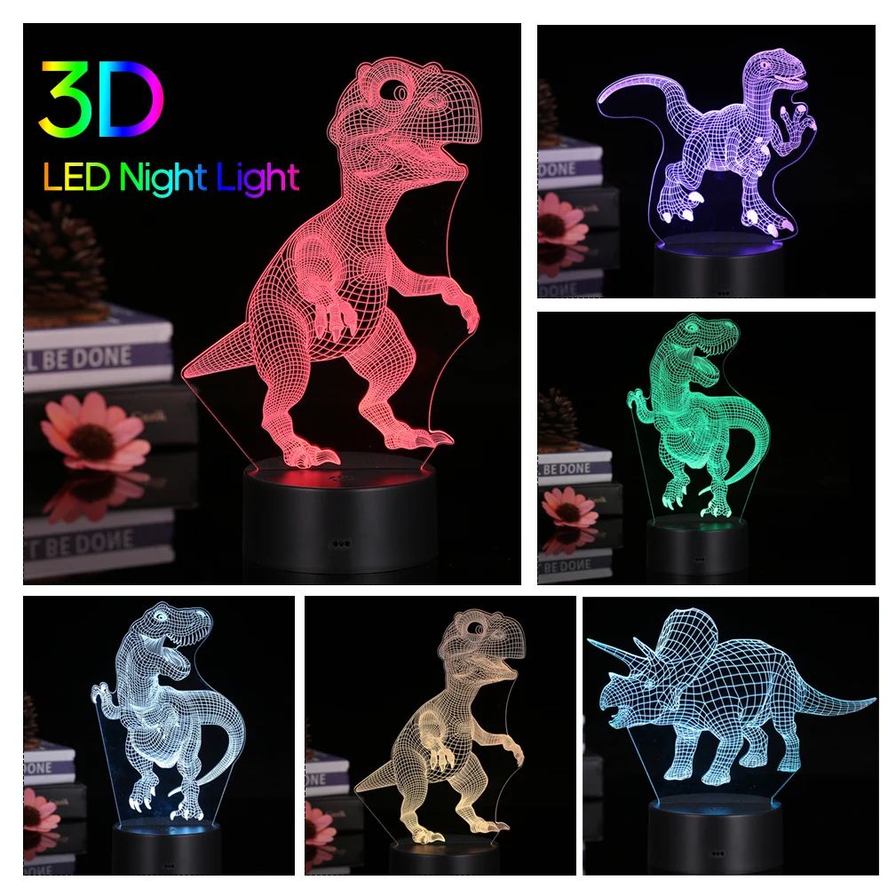 3D светодиодный Ночной светильник, иллюзия, лампа с рисунком динозавра, прикроватная Настольная лампа с пультом дистанционного управления д...