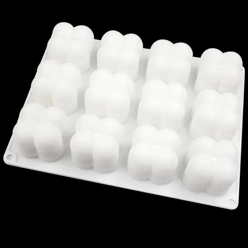 3D 12-ячеечная форма для свечей в виде маленьких кубиков, форма для муссового торта, силиконовая форма для выпечки, форма для торта, товары для рукоделия для изготовления свечей и мыла своими руками белый