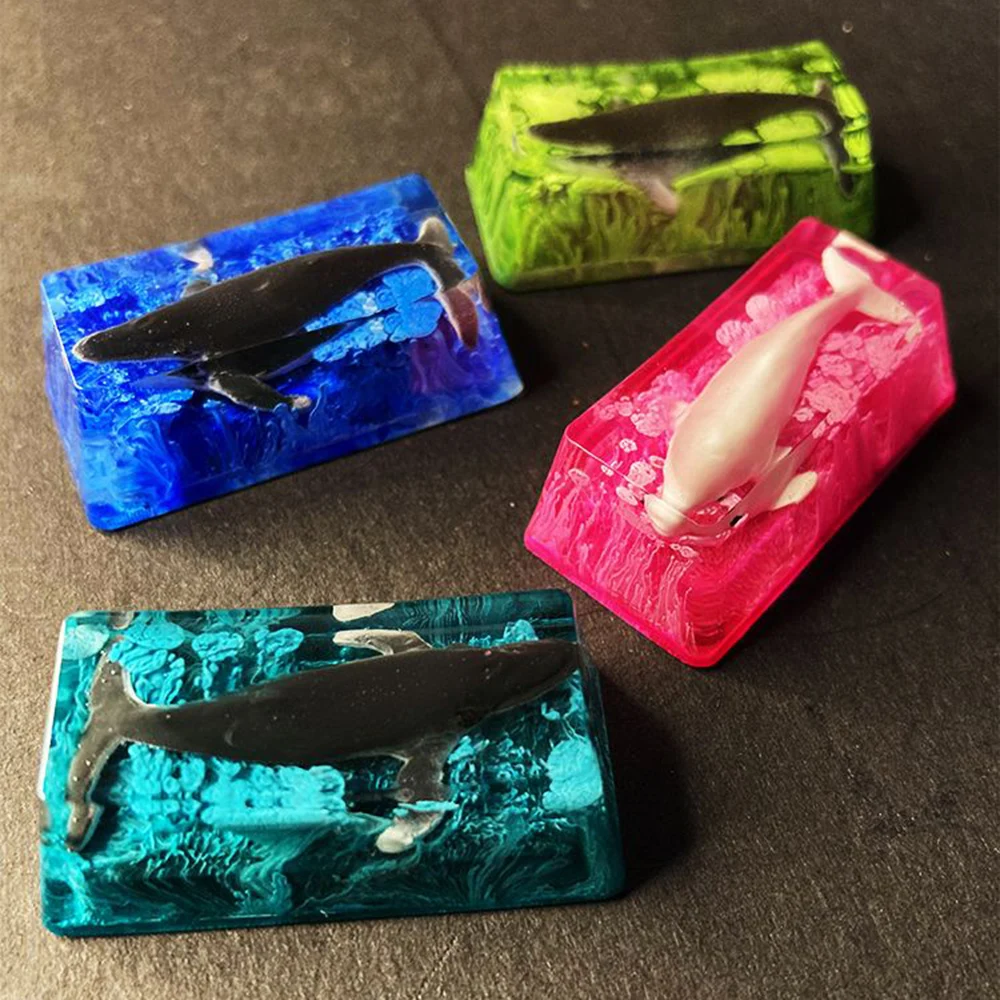 3D Crystal Whale Resin Mechanical Keyboard Delete Key Point 2u Keycap Personality Keycaps Adapter Cross Shaft Key Caps Cute Gift