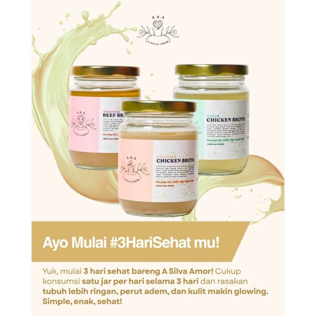 asakan manfaat nyata kaldu alami dalam 3 hari! #3HARISEHAT SET dari A Silva Amor adalah paket khusus untuk membantu tubuh Anda merasa lebih hangat, segar, dan sehat hanya dengan rutin minum kaldu berkualitas premium setiap hari.