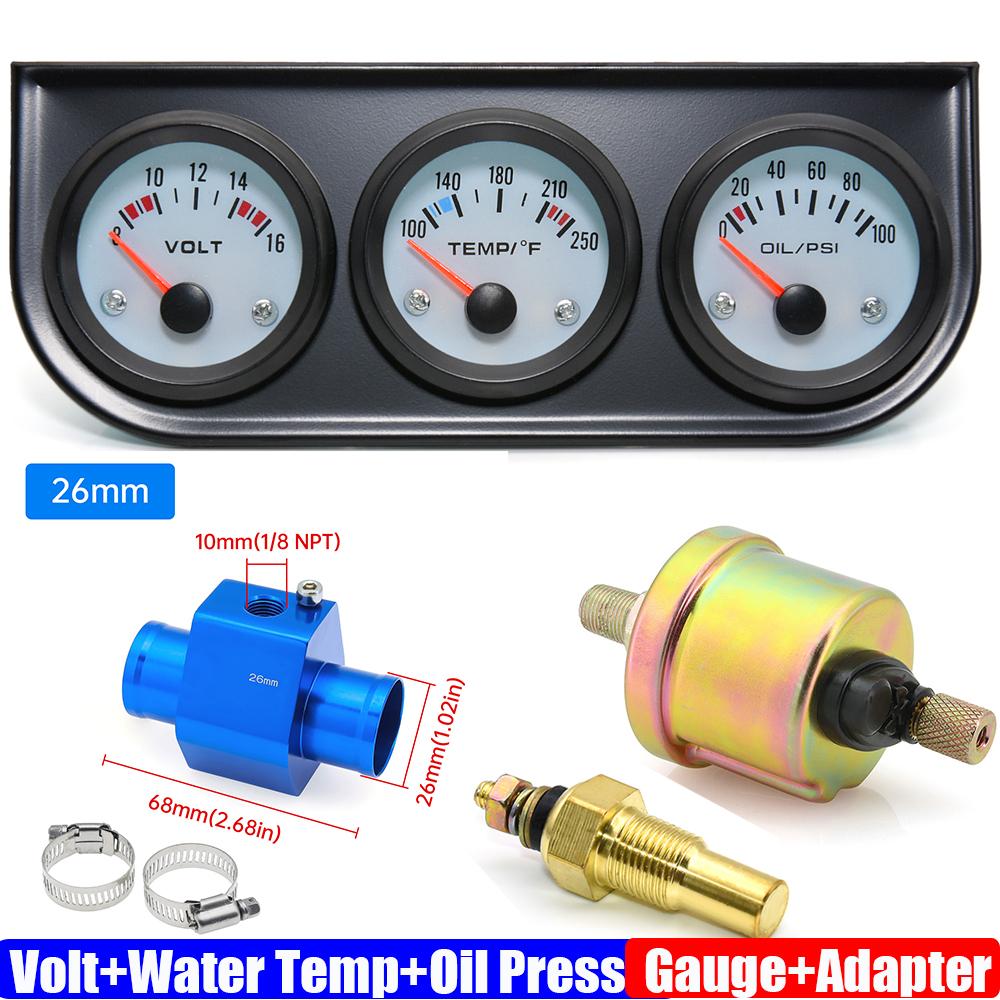 3IN1 52 мм вольтметр + манометр давления масла + манометр температуры воды с адаптером для соединения датчика Датчик 26-40 мм автомобильный счетчик тройной комплект манометров 12 В