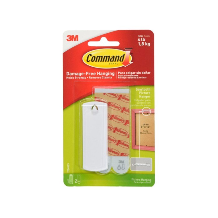 3M Command Sawtooth Picture Hanger - White Code: 17040ES Alat pengait untuk menggantung lukisan / bingkai yang dilengkapi dengan perekat 3M. Tidak perlu khawatir lagi dengan lubang bekas paku, retakan plester, ataupun bekas lem yang merusak dinding. Sawtooth Picture Hanger terdiri dari: 1x Sawtooth Picture Hangers 2x Large strips ==================================/ 100% Original 3M Command Products ==================================/