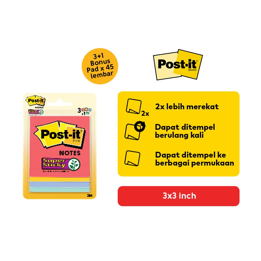 3M Post-it Super Sticky Notes 3X3" Havana 3321-SSHAV-B / 45 Lembar x Isi 3+1 Pad / Warna Mencolok