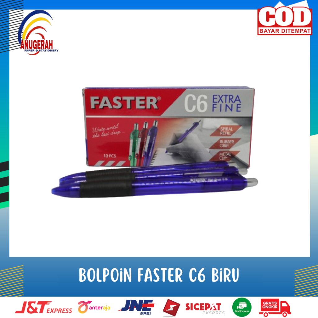 (3PCS)BOLPOIN FASTER CETEKAN C6 BIRU