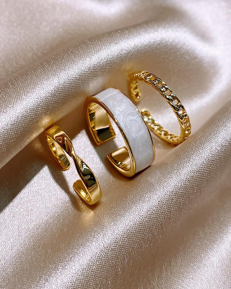 3PCS Link Chain & Twist & Opal Decor Adjustable Rings Set, Gold