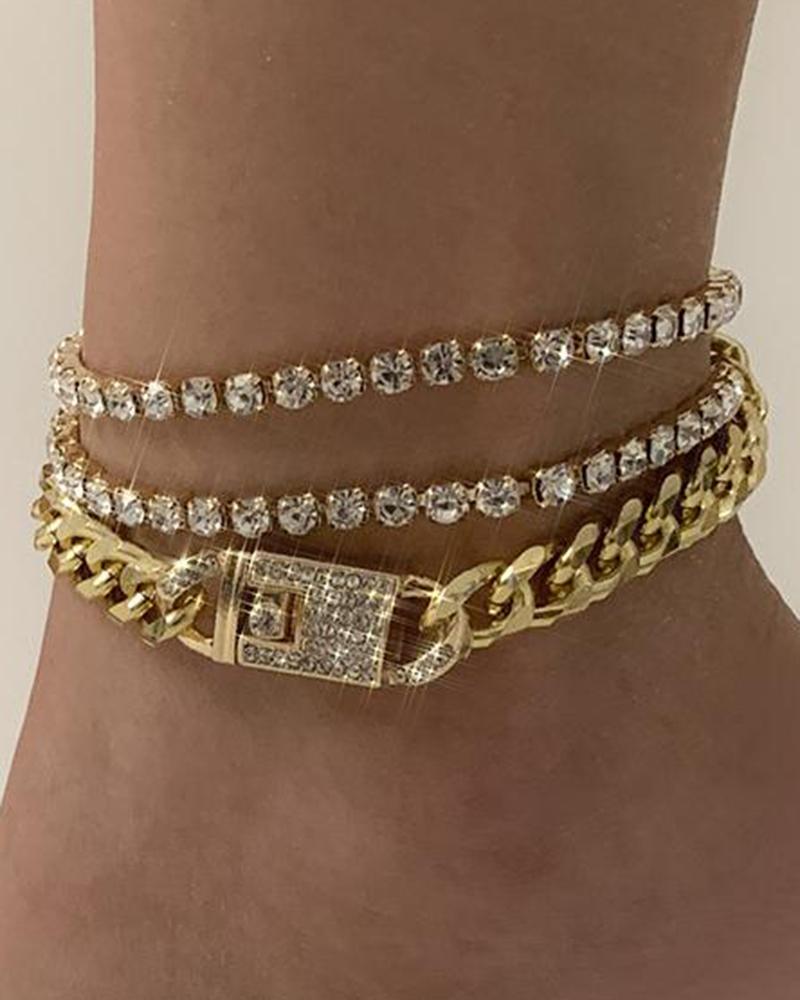 3PCS/Set Layered Lock Pattern Chain Anklets, Gold