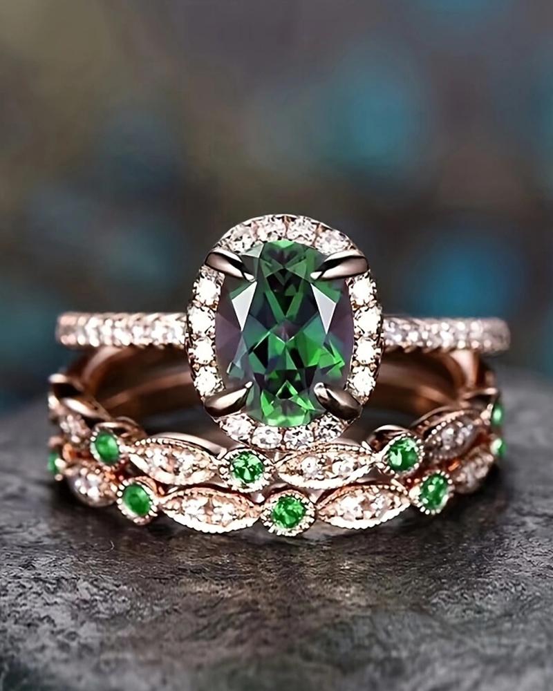 3PCS/Set Oval Crystal Stone Rhinestone Decor Oval Wedding Matching Rings, Gold