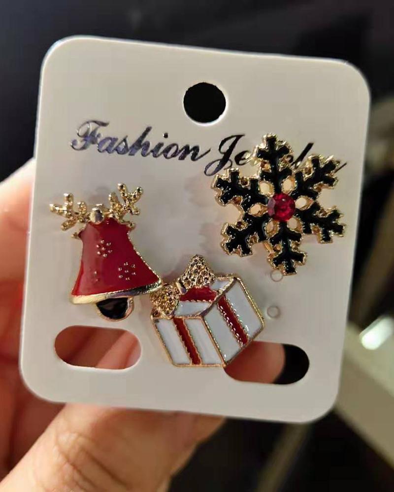 3Pairs Christmas Pattern Earring Set, Style1