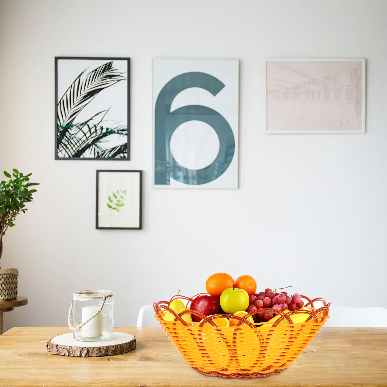 3Pcs Snack Basket Imitation Rattan Woven Plastic Storage Bread Container Multifunctional Fruit Basket Desktop Organizer Handmade