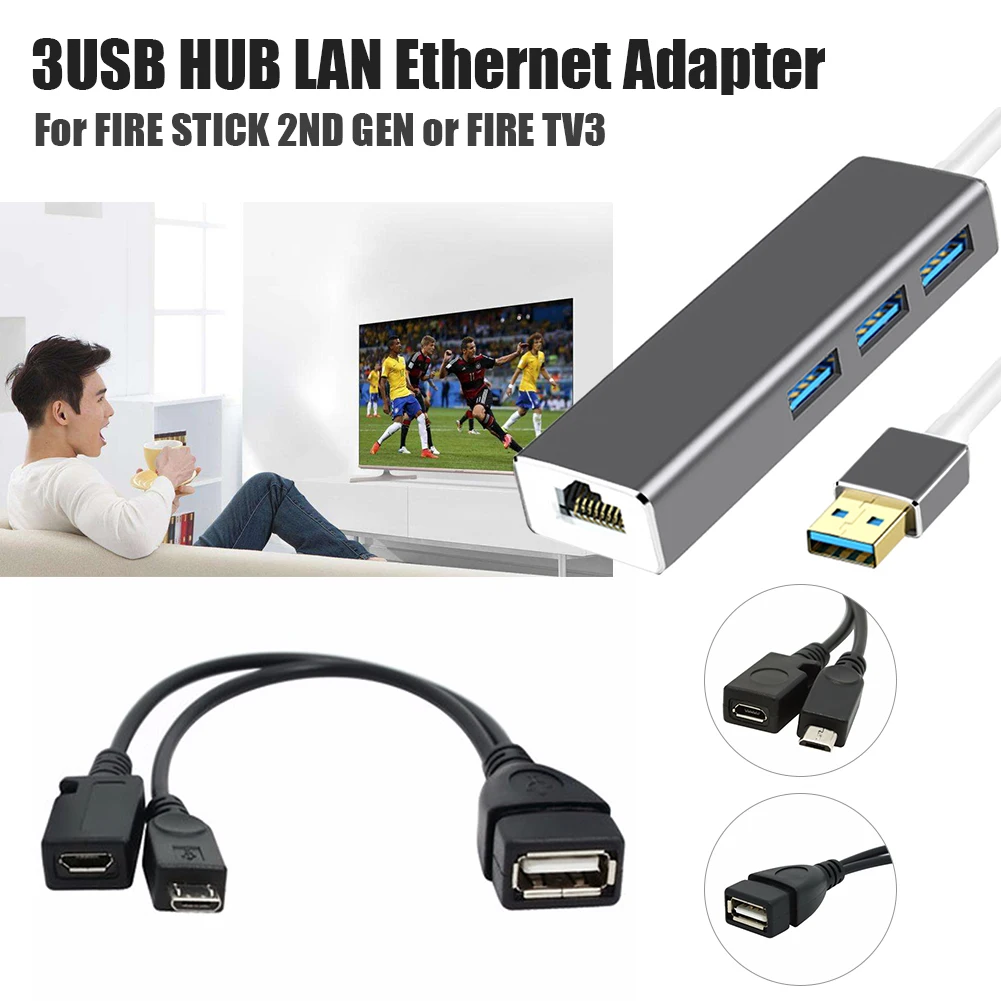 3USB-концентратор адаптер Ethernet LAN OTG USB кабель для пожарной палочки 2-го поколения или FIRE TV3 остановить буферный честный