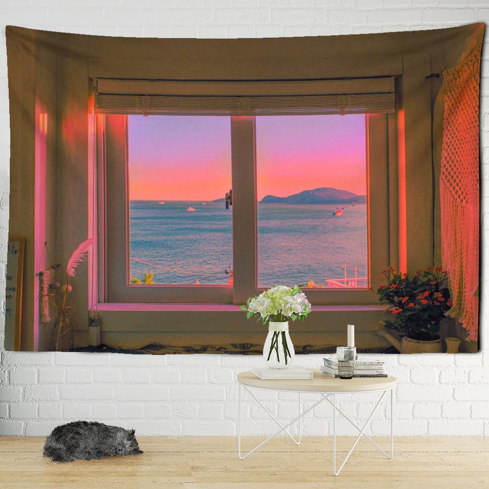 3d настенный гобелен с морским пейзажем, Подсолнухи, подвесной гобелен, домашний декор, чехол для стола, гобелен