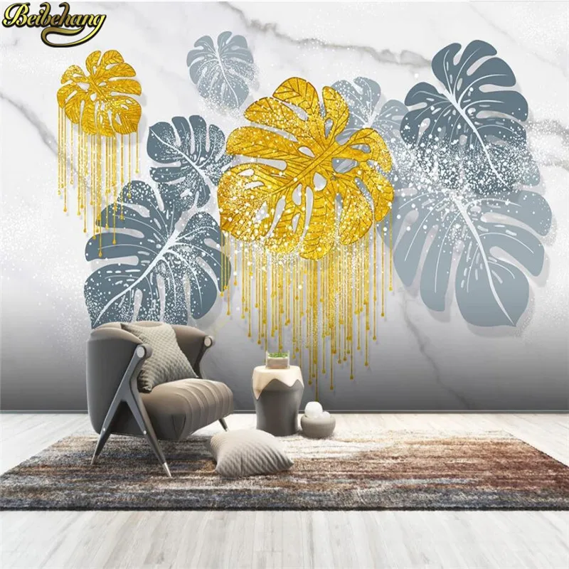 3d обои, фрессветильник под золото лист тропического растения, ручная роспись