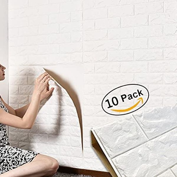 3d brick wallpaper, removable peal and pe foam wall sticker for living room sq ft 3.875 / pcs (white brick 10 pieces)