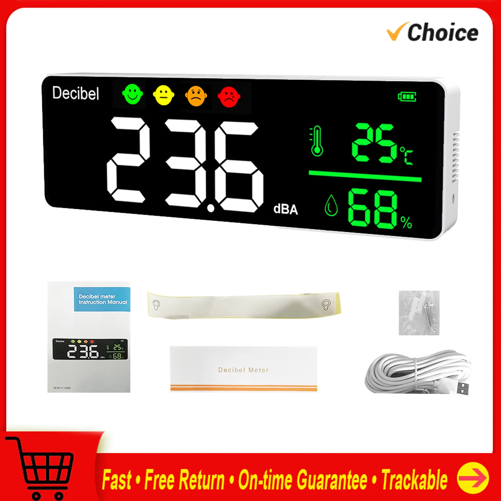 3in1 Noise Measuring Instrument Digital Decibel Sound Meter Temperature Meter Humidity Meter Detector Indoor Wall Mounted Tester