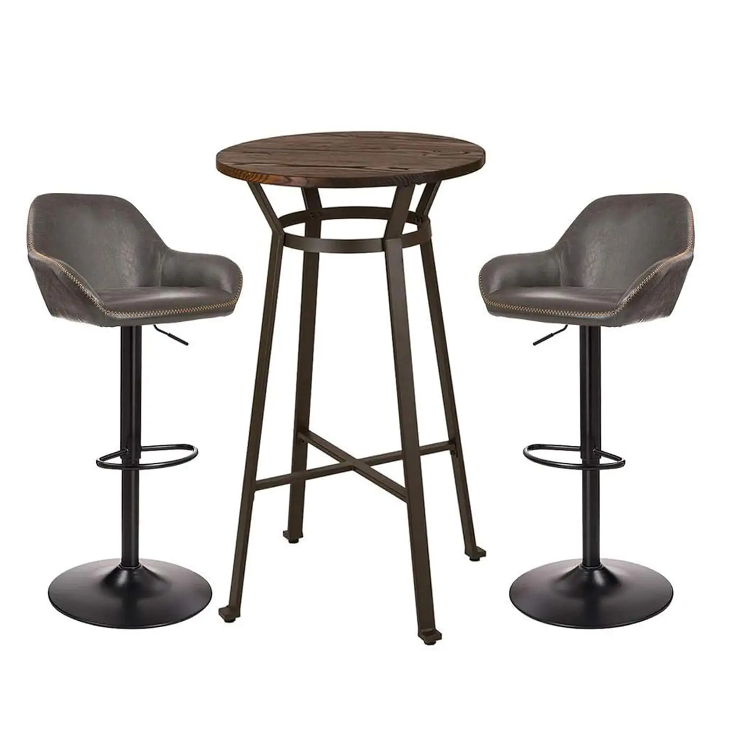3pc Adjustable Height Pub Table & Swivel PU Bar Stools Set Rustic Dining Kitchen Bistro, Customized