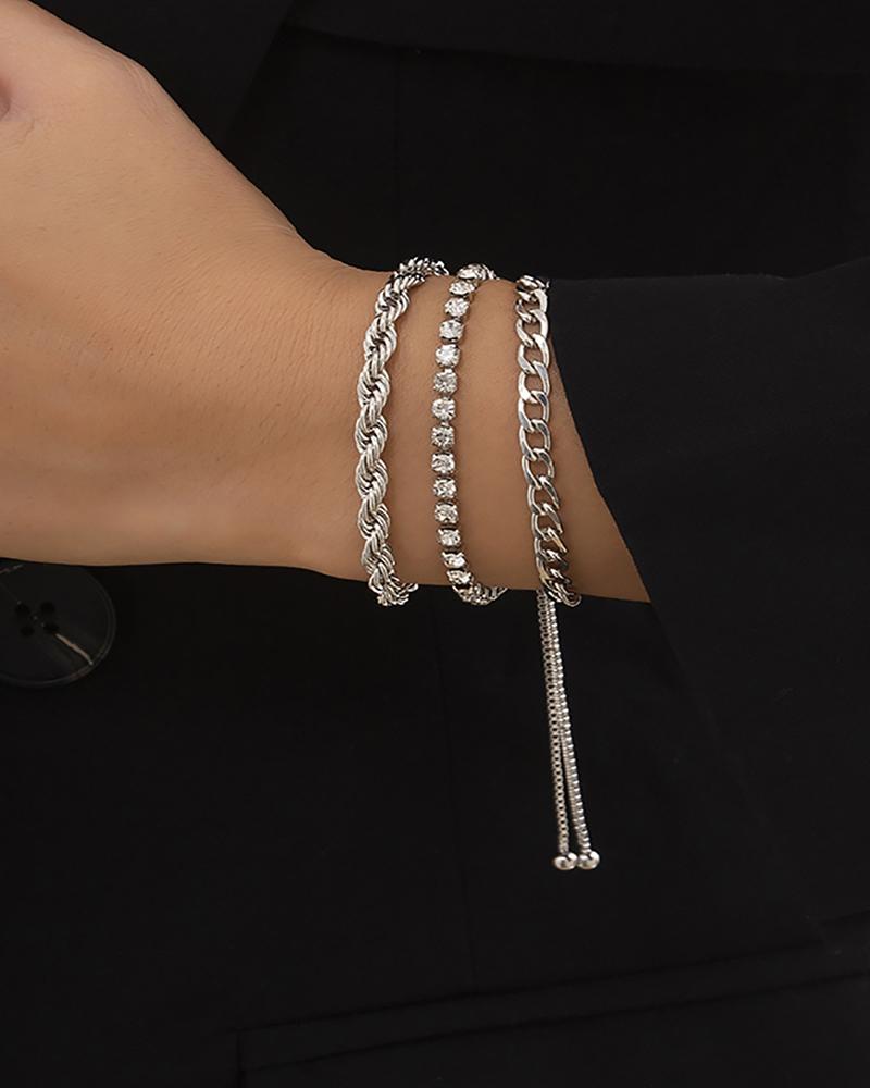 3pcs Chain Rhinestone Decor Bracelet, Silver