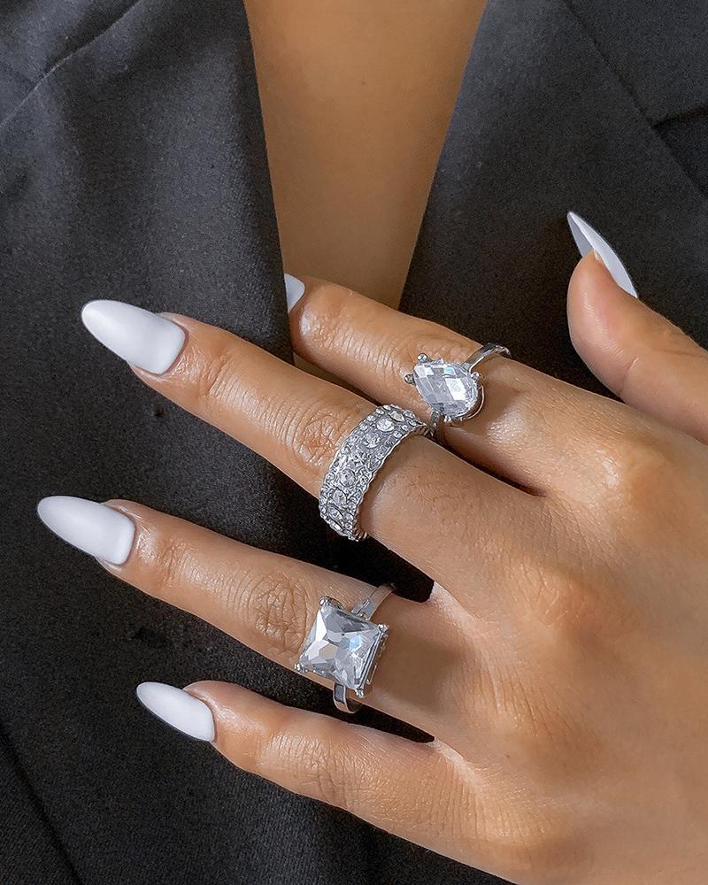 3pcs Rhinestone Decor Square Water Drop Shaped Rings, Silver