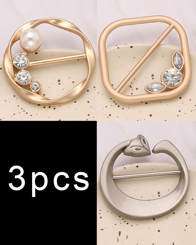3pcs Rhinestone Pearls Decor Tee Decoration Buckles Set, Style5