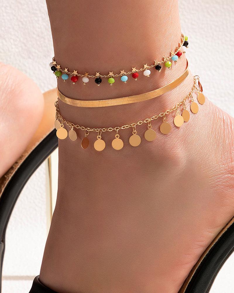 3pcs Star Geometric Pattern Fishbone Anklet, Gold