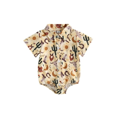 Coduop Infant Baby Boy Romper Cow Head Turn-Down Collar Short Sleeve Jumpsuit Newborn Bodysuits