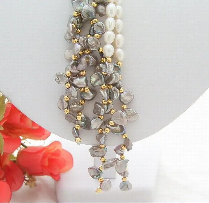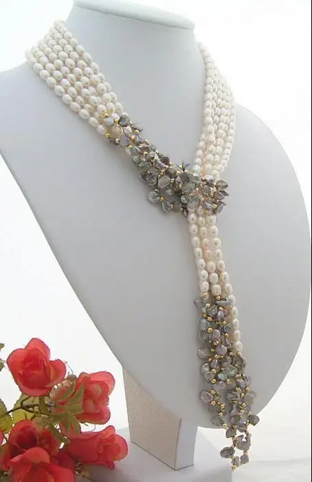 3strds 49 "белый жемчуг в форме риса серый Кеши жемчужные длинные Цепочки и ожерелья
