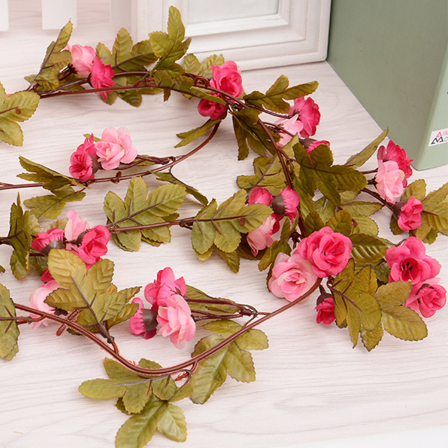 2.3m Silk Pink Rose Artificial Flower Wall Romantic Wedding Arch Garland Autumn Fake Ivy Leaves Home Decoration High Quality