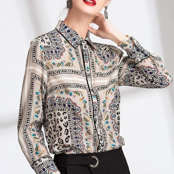 women's blouses & shirts design feeling loose long-sleeved or lend the printed silk positioning fashion show thin lapels, White