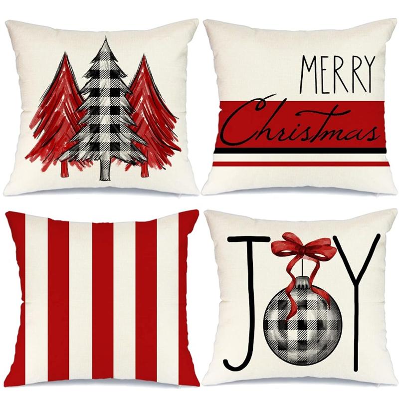 4шт/комплект Рождественская наволочка 45*45см(не включать наволочку),Рождественская елка Веселые и яркие праздники Радость Украшение домашнего дивана C-4Pcs/set