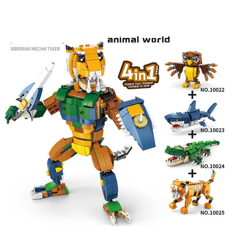 4 в 1 Тигр Меха Блок DIY 3 в 1 Деформация Животное Сова Акула Крокодил Строительный Кирпич Игрушка no box