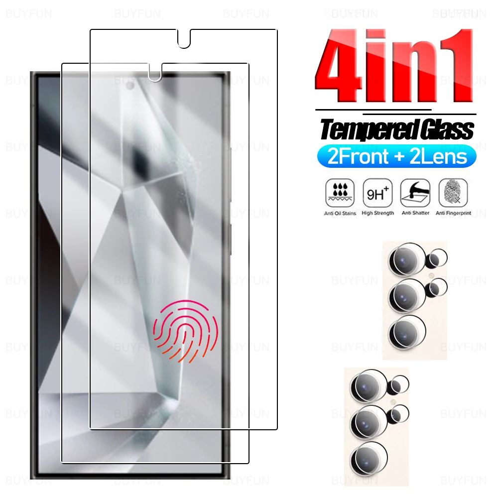 4 в 1 закаленное стекло и защитная пленка для объектива камеры Samsung Galaxy S24 Ultra Plus S24 + S24ultra 9H полная защита экрана
