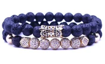 8mm 2PCS/Set gold gfg345 gelastic adjusted nature black stone volcanic lava micro pave cz zircon cubic zirconia tube Bracelet