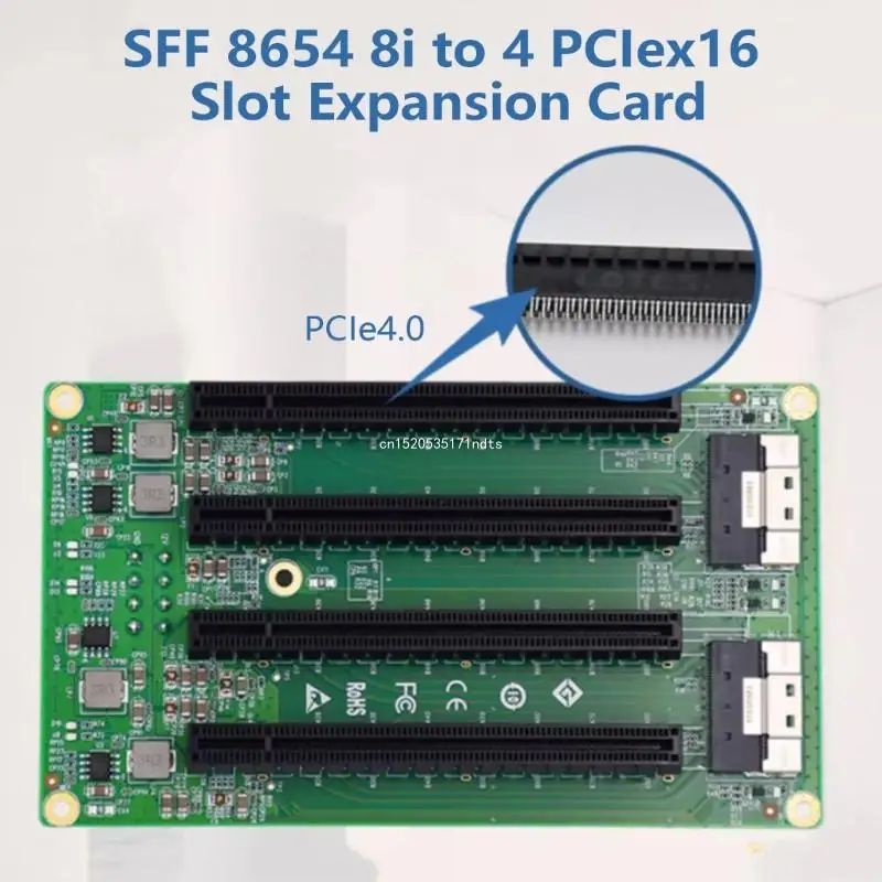 4-портовая карта расширения слотов PCIe с адаптерами слотов SFF-8654 8i на PCIe x16, 8-контактные разъемы питания, Прямая
