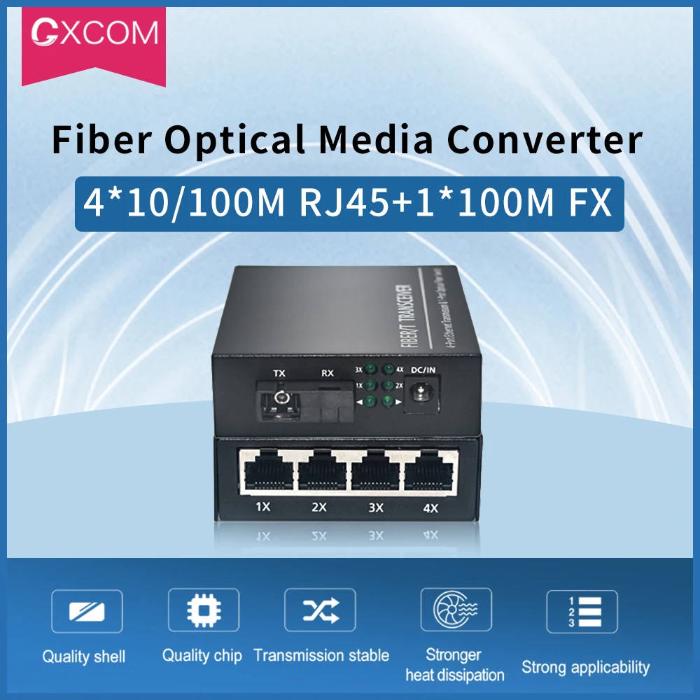 4-портовый медиаконвертер 10/100 м, одномодовый одноволоконный оптический трансивер SC, внешний источник питания