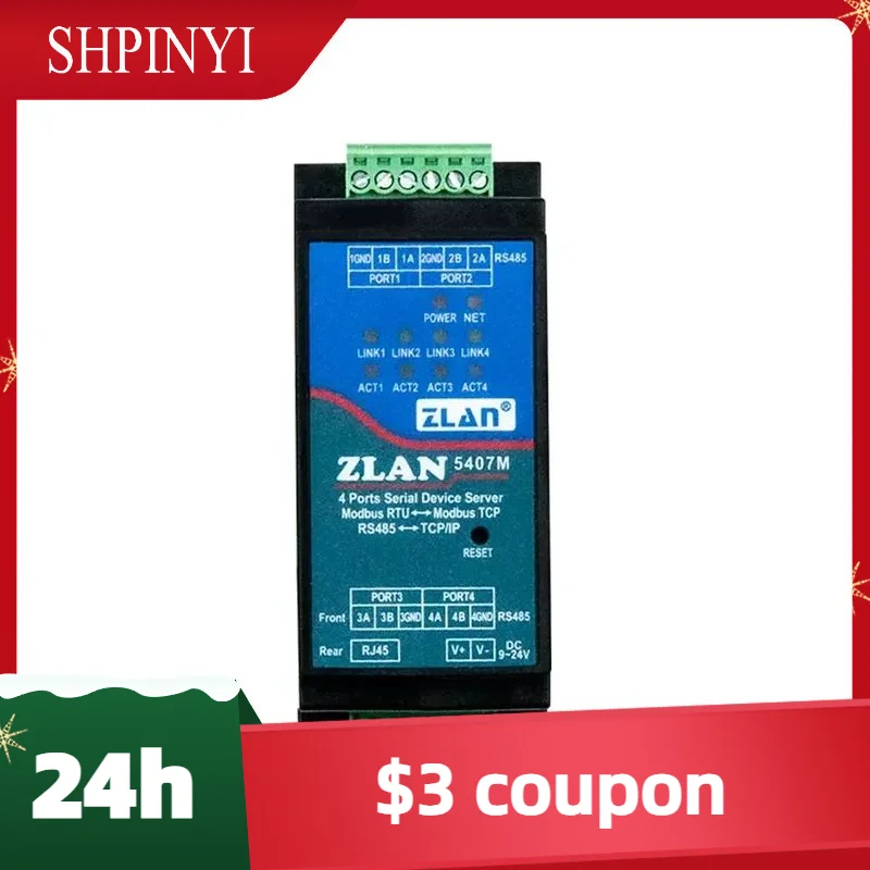 4-портовый RS485 в Ethernet TCP IP Modbus Шлюз RTU в TCP MQTT JSON преобразователь промышленного модуля на DIN-рейку ZLAN5407M