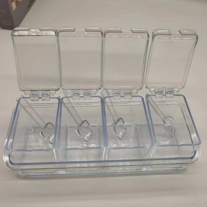 4-секционный акриловый набор банок для соли, перца, специй с ложкой, прозрачный контейнер для хранения приправ для кухни, ресторана светло-серый