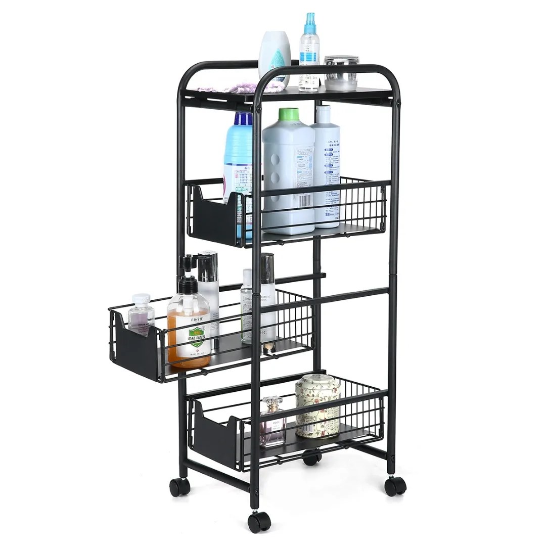 4-уровневая тележка для фруктов и овощей, каркас из углеродистой стали, держатель, тележка для кухни, хромированная, на колесиках, черного цвета, 36X24X85 см