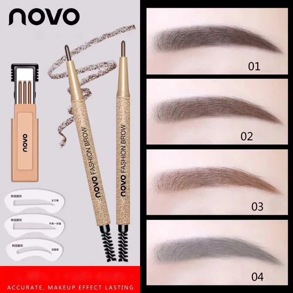 4 цвета, водонепроницаемый профессиональный карандаш для бровей NOVO, инструмент для макияжа глаз, набор шаблонов для бровей, долговечный