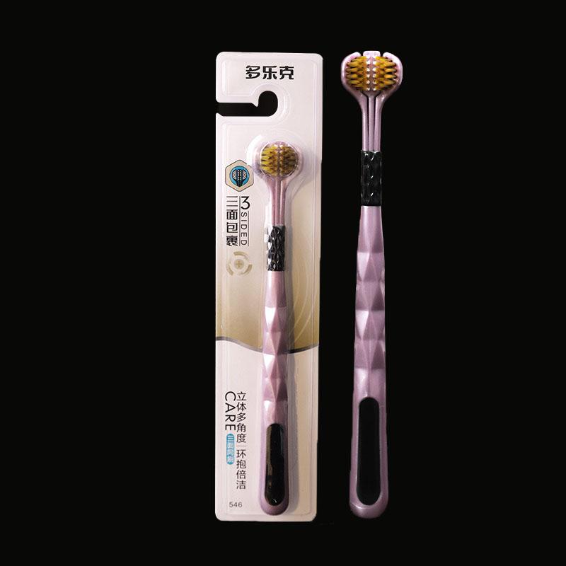 4 шт. Взрослые Ортодонтическая Трехсторонняя зубная щетка Мягкая щетина Семейный Подарочный Набор для чистки налета с языка Трехголовая зубная щетка фиолетовый