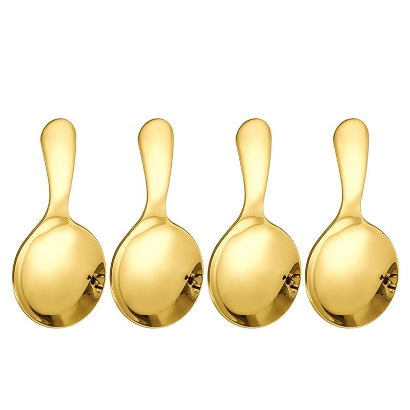 4 шт. Короткая ручка ложка для специй, сахара, маленькая ложка для мороженого, кофейная ложка для чая, мини-ложка из нержавеющей стали, золотая, серебряная, кухонная ложка