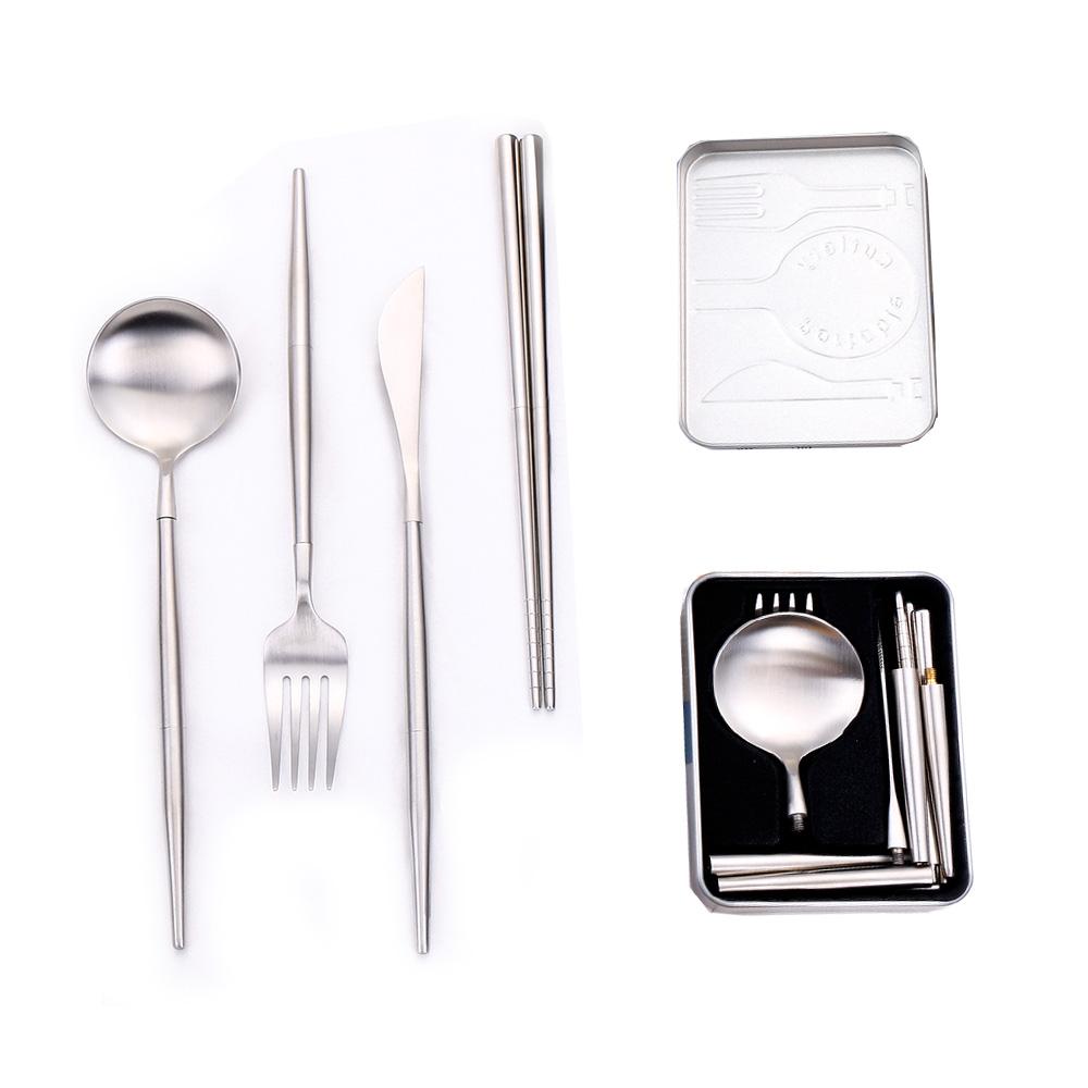 4 шт. Портативный набор столовых приборов Съемная нержавеющая сталь Посуда для кемпинга Палочки для еды Вилка Нож Ложка Складной набор Посуда С коробкой