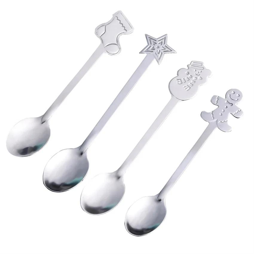 4 шт. Рождественский подарок Лось Рождественская елка Десертная ложка Столовые приборы Ложка Вилка Набор Фруктовая вилка Кофейная ложка Столовые приборы Wed Рождественский подарок